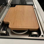 Tavlen passer perfekt på Dometic-kogepladen. Vores første spørgsmål opstod, da vi indså, at brættet ikke strækker sig over hele komfurets bredde. Producenten er gennemsigtig på dette punkt og svarede på vores spørgsmål ved at sige, at brættet kun skal opbevares på kogepladen, og at selve kogepladen ikke skal bruges til at skære på. Så vi havde selvfølgelig en forkert antagelse om produktet som sådan. Fordi det ikke er egnet til brug på kogepladen, vælter det, så snart man vil skære noget på det, og det sker selvfølgelig, at den hakkede mad falder ned på kogepladen.