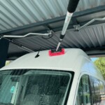 Important is a telescopic – washing brush, only with this help you can get to any place of the vehicle, on the roof or on the high side wall. We have been using a model from the Nigrin company here for some time. This has a fixed brush head and no mop cover. Initially, we also had a model with an overcoat, but it always came loose and eventually gave up the ghost. Likewise, it wasn’t really good at building up pressure to remove stubborn dirt.