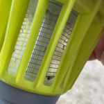 The lamp has a “mosquito LED” which glows purple or bluish, this is to attract the animals in the dark camper and signals you that there is power on the wire mesh inside the lamp.