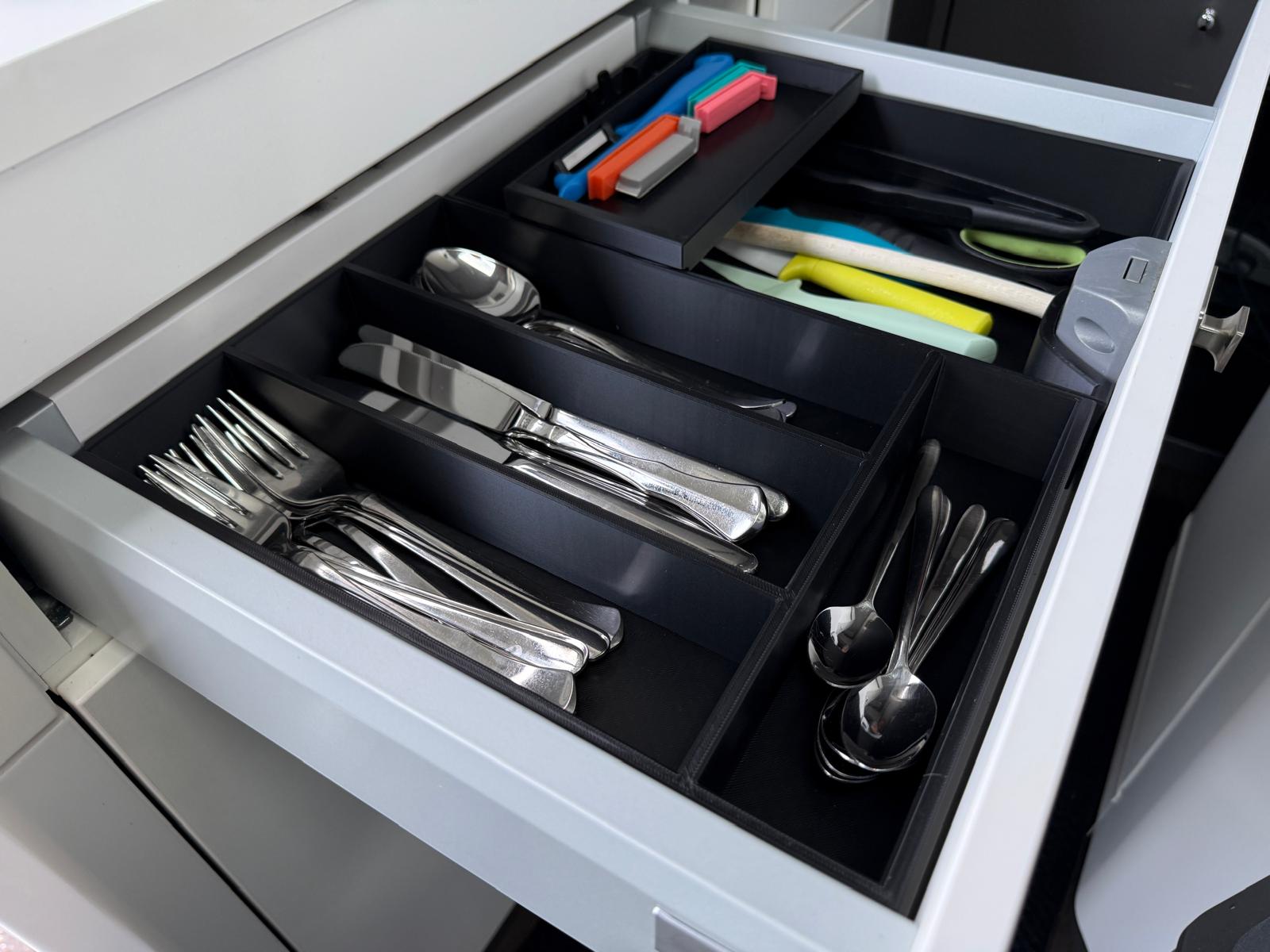 Es handelt sich nicht um ein Massenprodukt aus Spritzguss, sondern um eine gezielt entwickelte Lösung in Kleinserie, die exakt passt, nicht rutscht und im Alltag funktioniert. Das ist der Unterschied zu einem universellen Besteckeinsatz von der Stange.