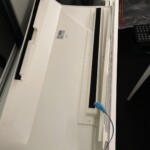De lampkabel bevindt zich achter de lambrisering boven de ingang op de schuifdeur. De bekleding is bevestigd met 3M Dual Lock plakband en kan gemakkelijk worden verwijderd.