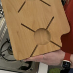 Efter samråd gör vi en annan bedömning här än vad vi skulle ha gjort utan informationen från tillverkaren, för som skärbräda i sig får den 8 av 10 stjärnor, bra utförande och bra storlek, plus att den kan förvaras och transporteras som en gimmick på spisen. Frågan du måste ställa dig är om det då är en skärbräda för Grand California eller bara en skärbräda som kan förvaras på spisen. Jag tror inte att vi är ensamma om att säga att vi trodde att den var avsedd för att skära på spisen. Huruvida priset på 60 euro är motiverat i dagsläget måste var och en själv avgöra. Materialet är av hög kvalitet och hantverket är bra. Eftersom det är massivt trä är det naturligtvis också tungt. En “vanlig” skärbräda är inte mycket billigare och de som har lite utrymme i sina skåp kommer att hitta en bra lösning här.