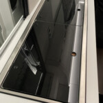 Brädan passar perfekt på Dometics spis. Våra första frågor uppstod när vi såg att brädan inte går över hela spisens bredd. Tillverkaren är öppen på den här punkten och svarade på vår fråga att brädan endast får förvaras på spisen och att själva spisen inte får användas för skärning. Så vi hade naturligtvis ett felaktigt antagande om produkten som sådan. Den är inte lämplig för användning på spisen, den tippar så fort du försöker skära något på den och det händer naturligtvis att den hackade maten faller ner på spisen.